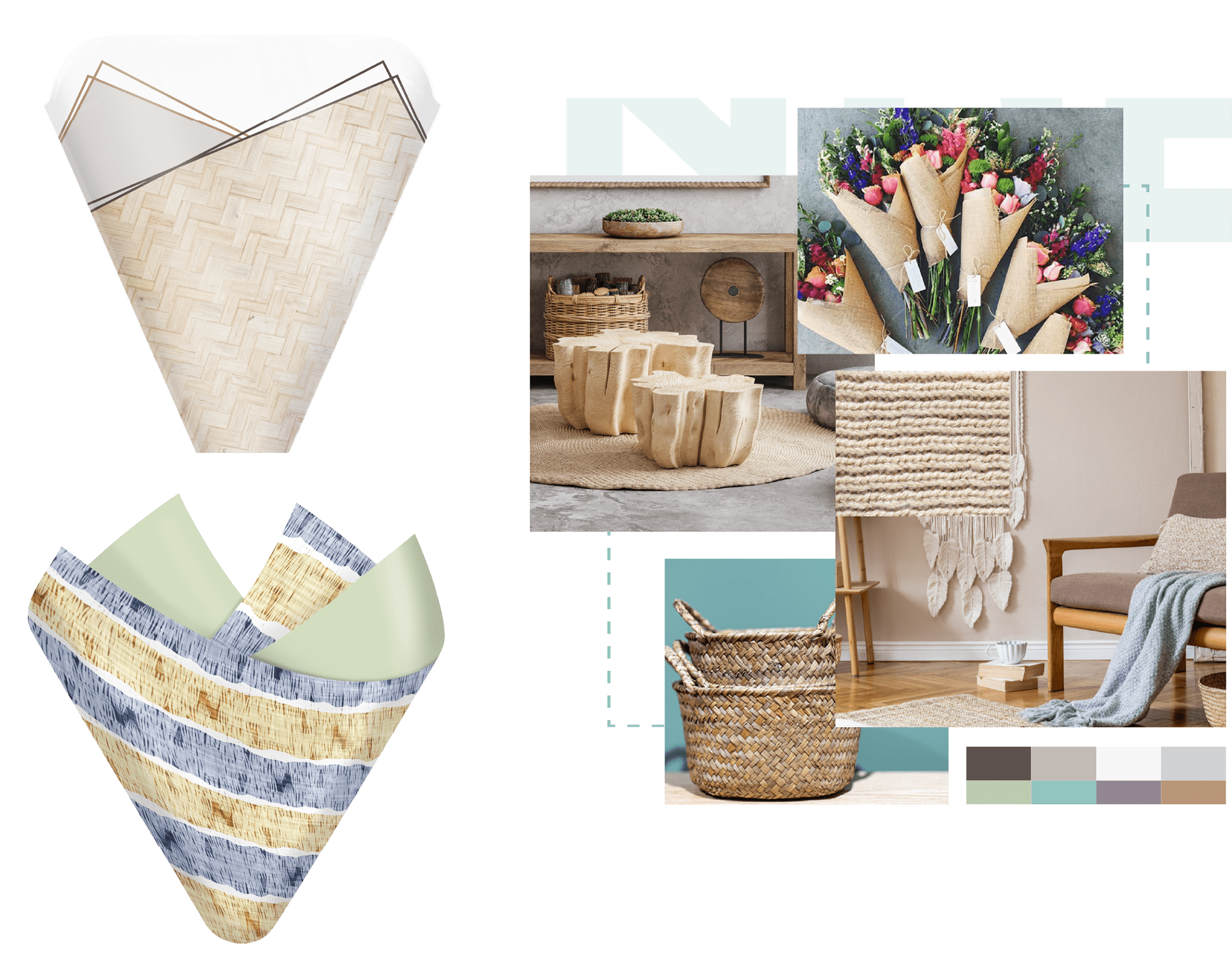 Comforting natural textures such as wood and wicker combine with woven textiles for a calming sense of comfort. Flower prints and lace details add an element of romance.